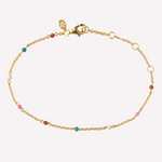 素材スターリングシルバーに14金メッキ加工、淡水パール、レッドアゲート、グリーンアゲート、ピンクジェード サイズ19,5 cm(長さ調整可能)